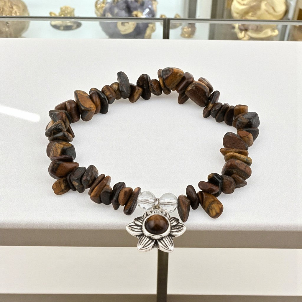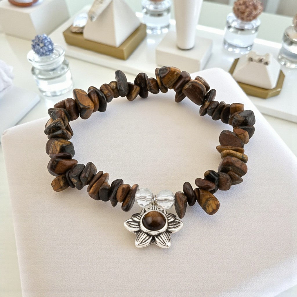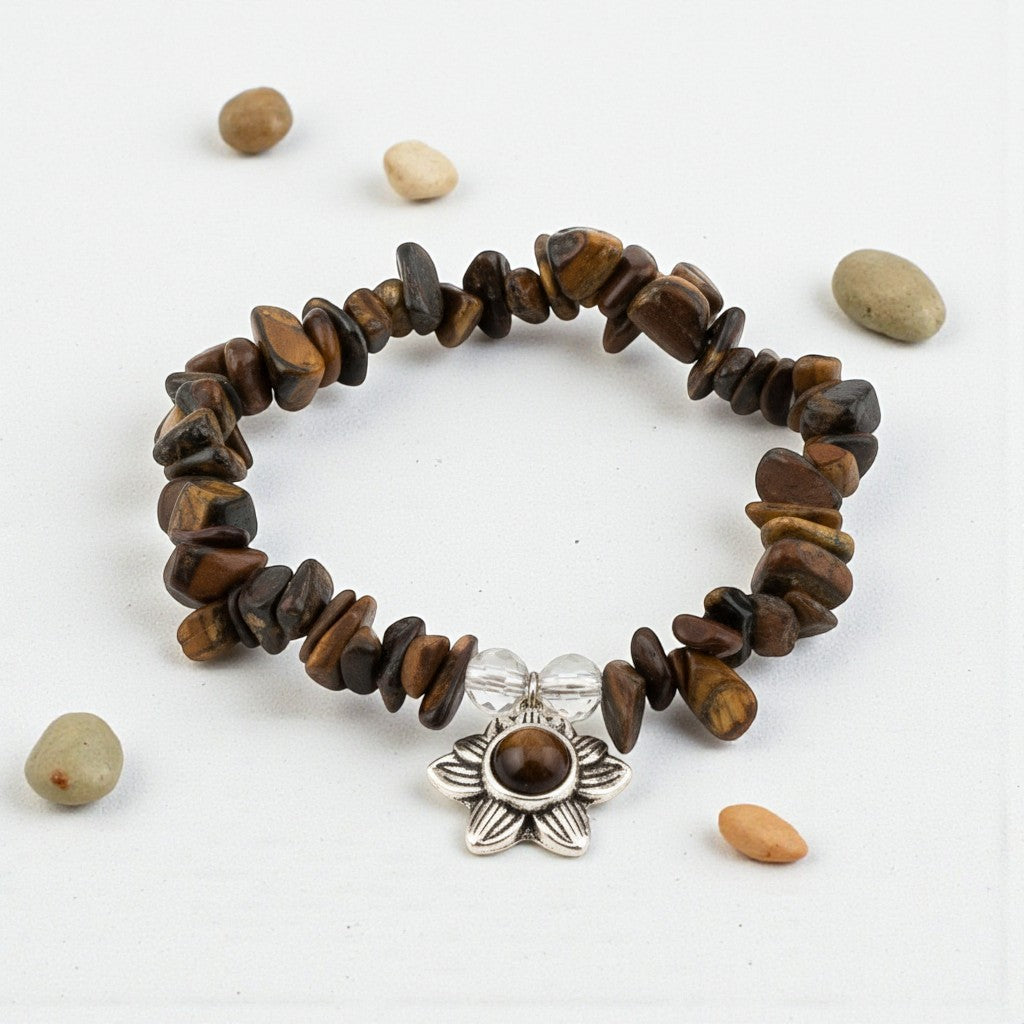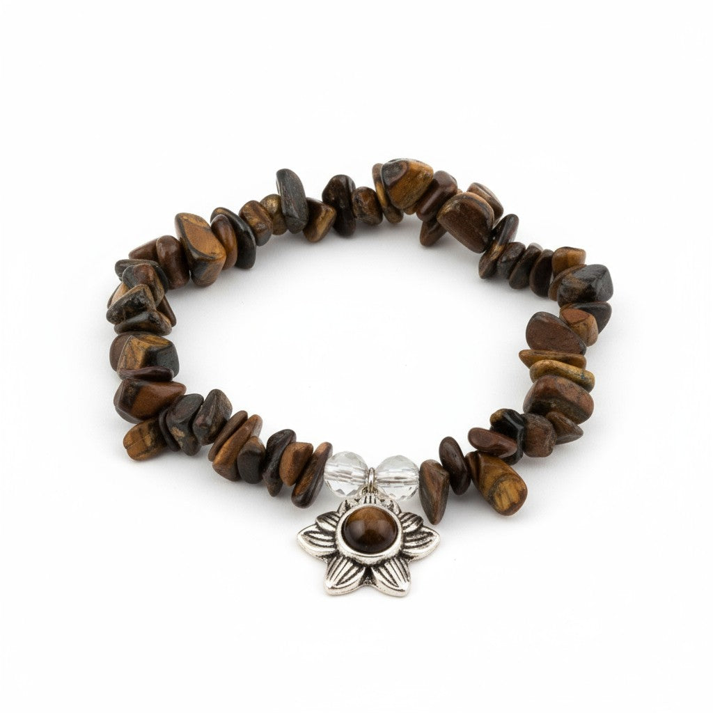 Chipped Tiger Eye Bracelet with Charm for Strength, Confidence, and Protection