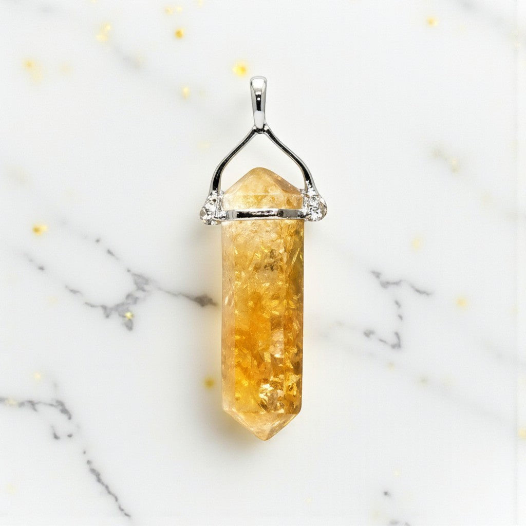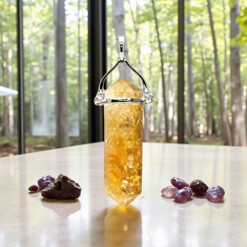 Hand Crafted Double Point Citrine Necklace for Prosperity, Optimism and Creativity.