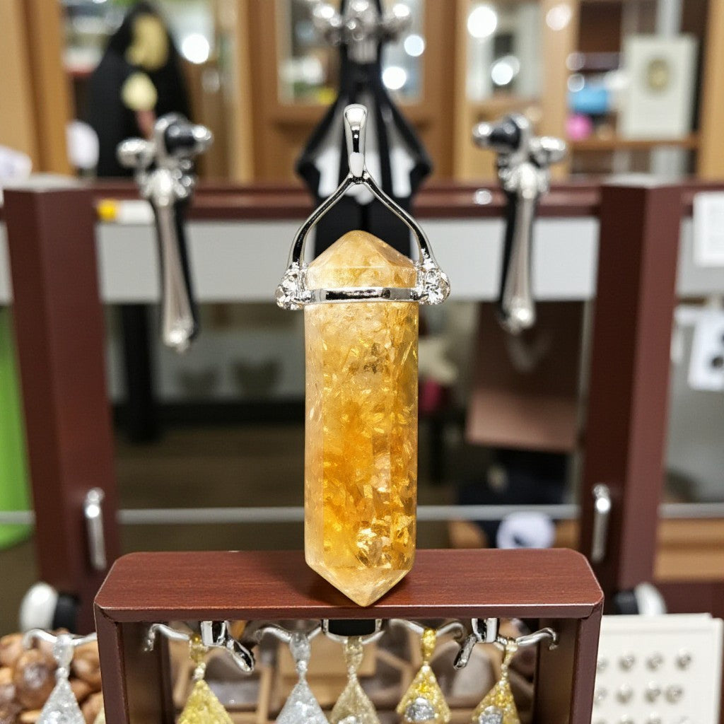 This hand-crafted double point citrine necklace is expertly designed to harness the stone’s natural energies, promoting prosperity, optimism, and creativity.... Read more