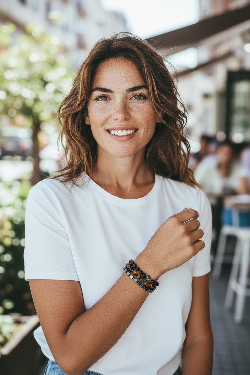 This 8mm Hematite Copper and Tiger Eye bracelet blends the grounding energy of hematite with the protective properties of tiger... Read more