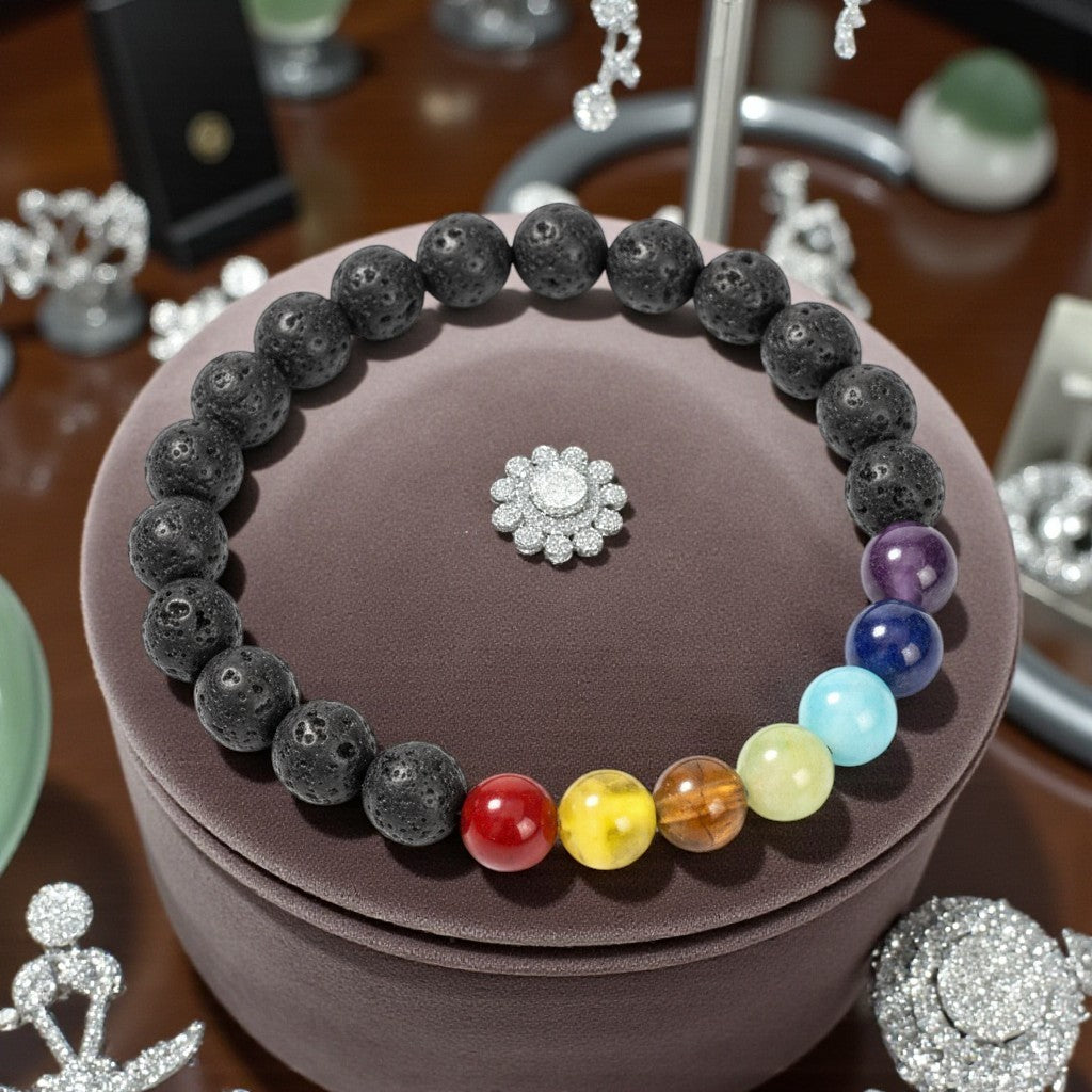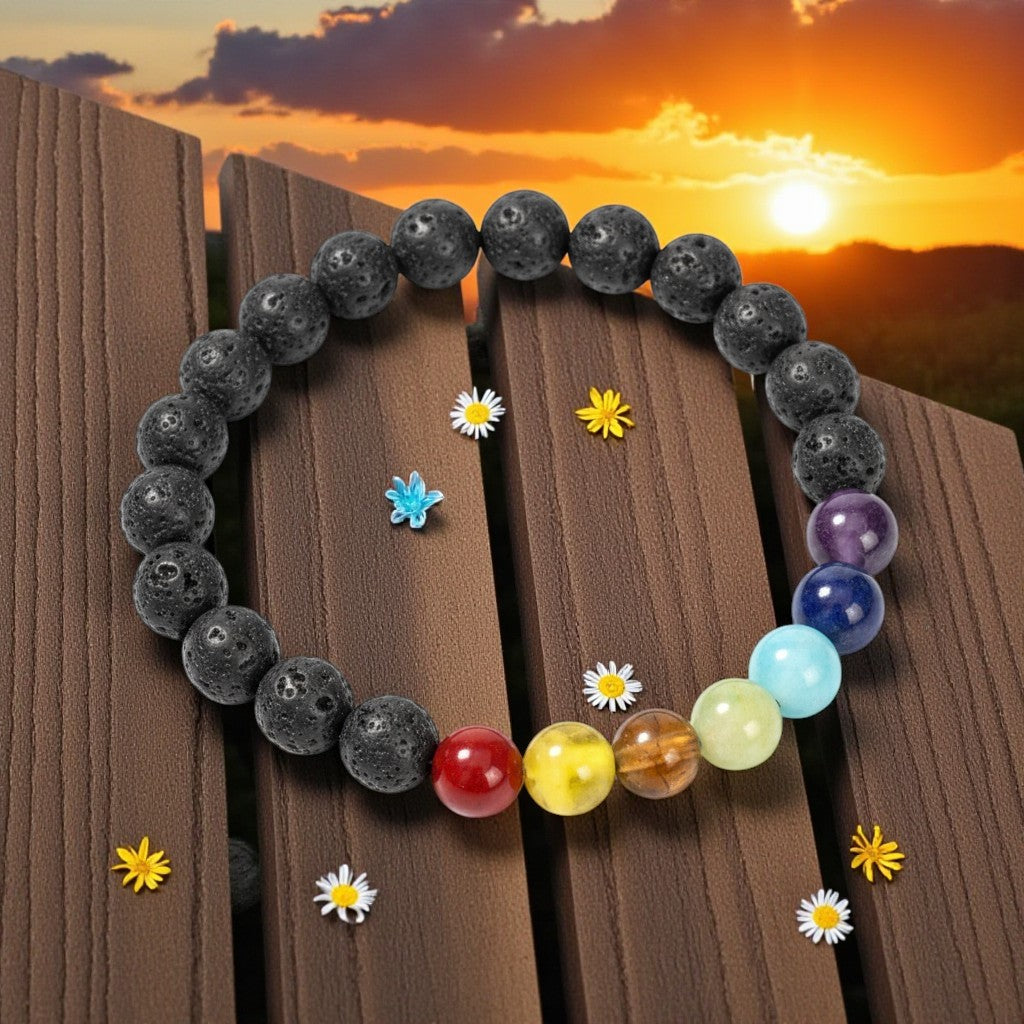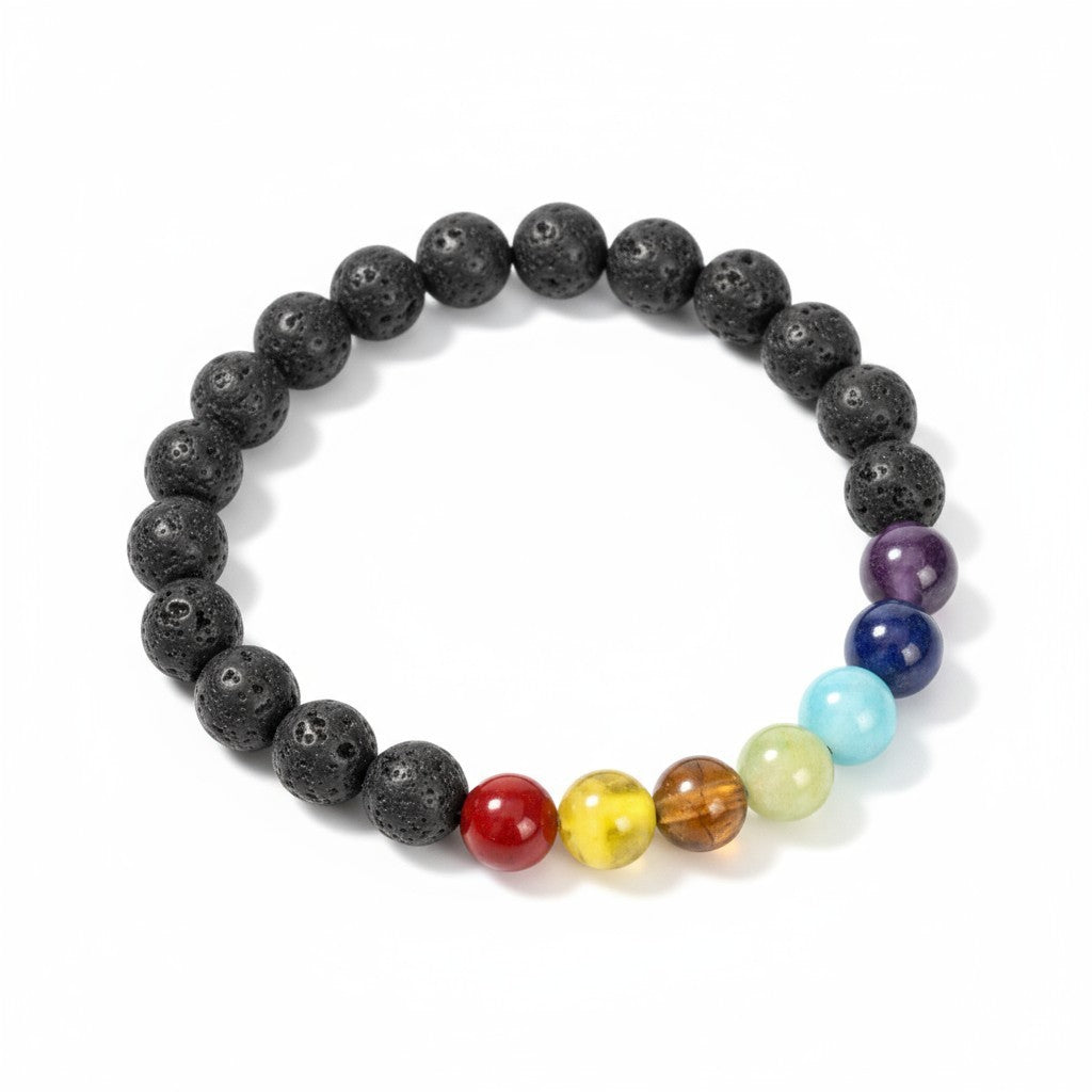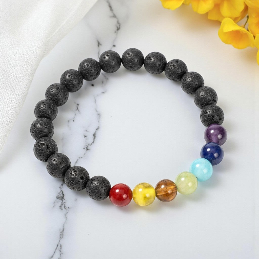 Lava Stone Bracelet With Chakra Healing Beads 8mm