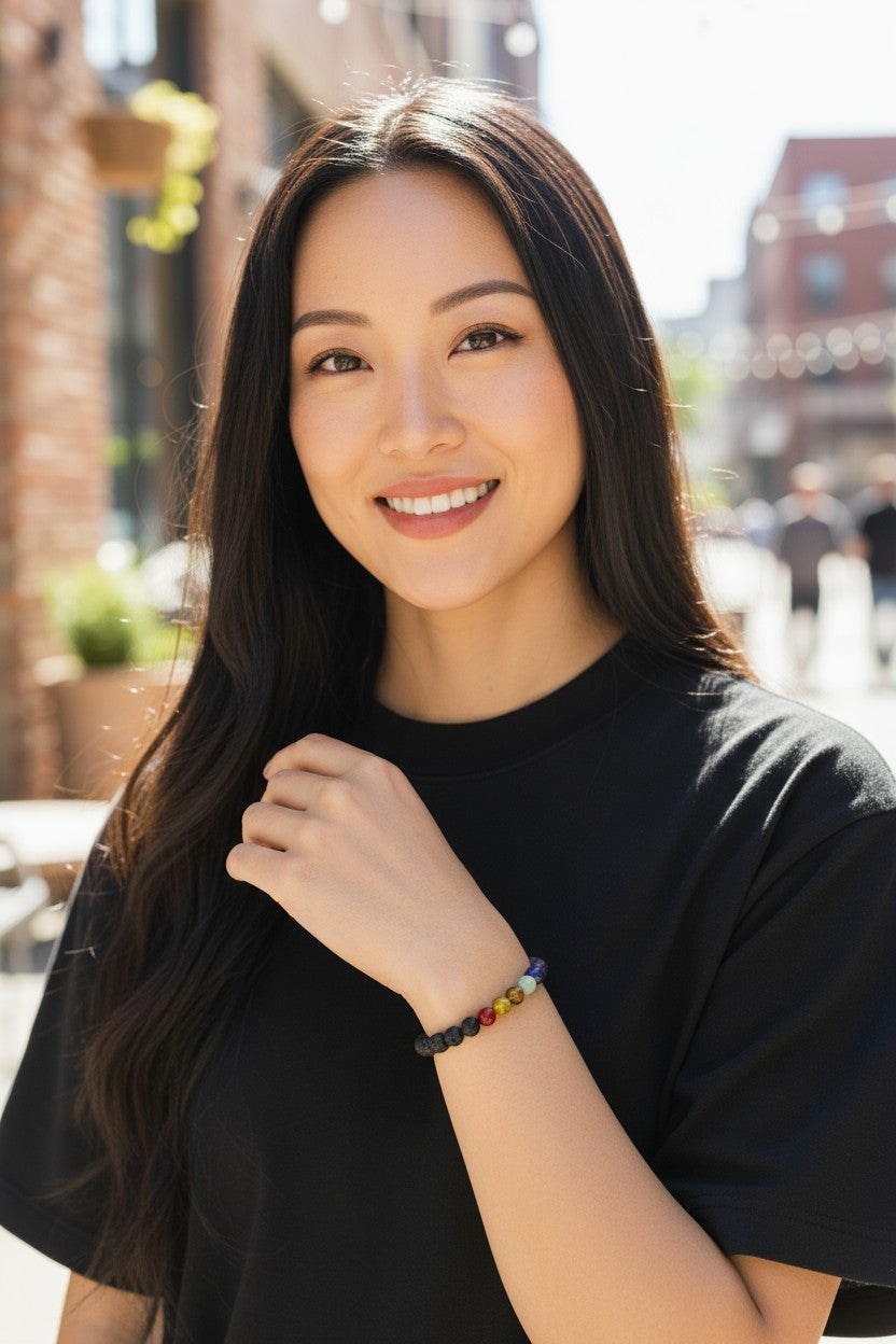 Discover balance and grounding with this Lava Stone Bracelet featuring 8mm chakra healing beads. The porous lava stones absorb essential... Read more