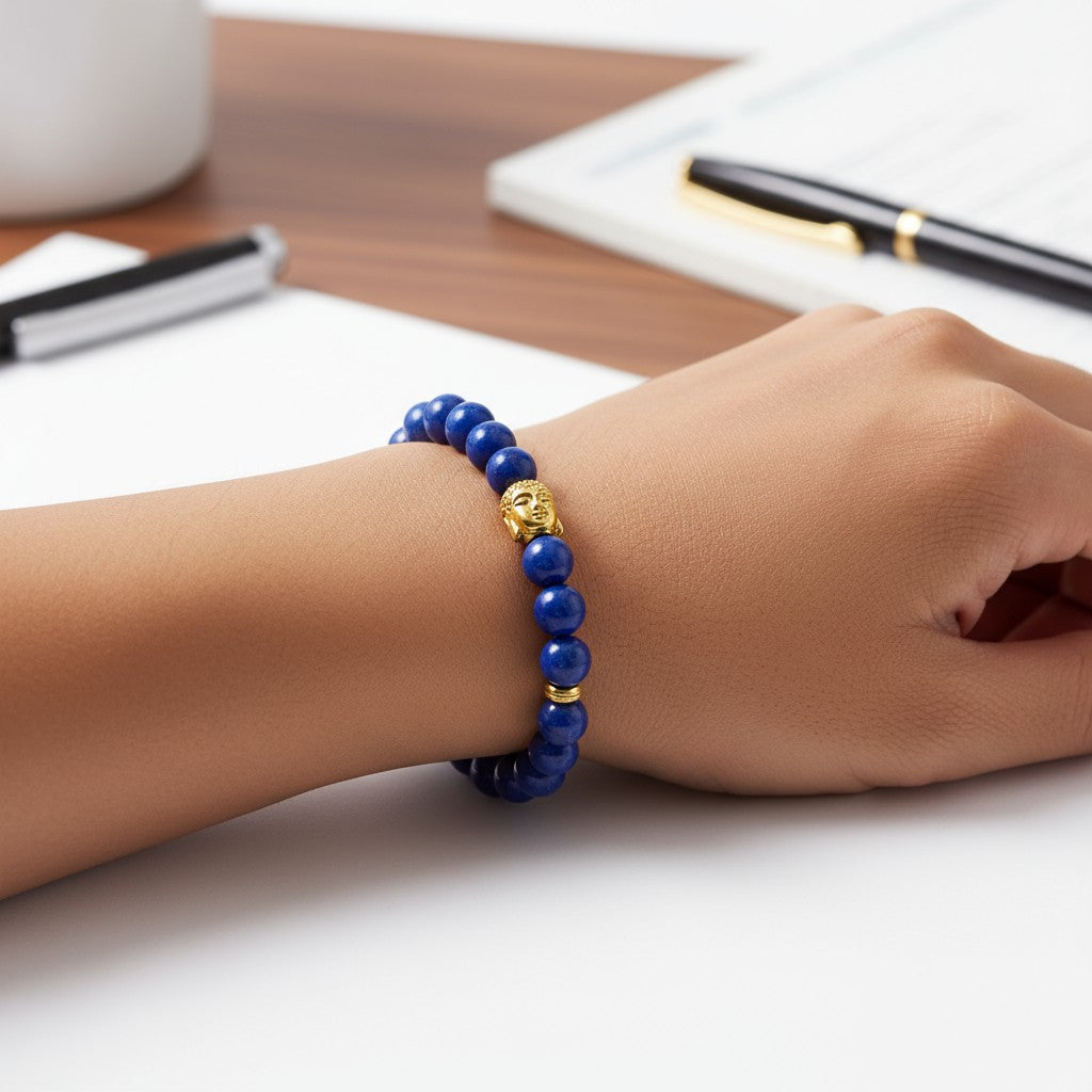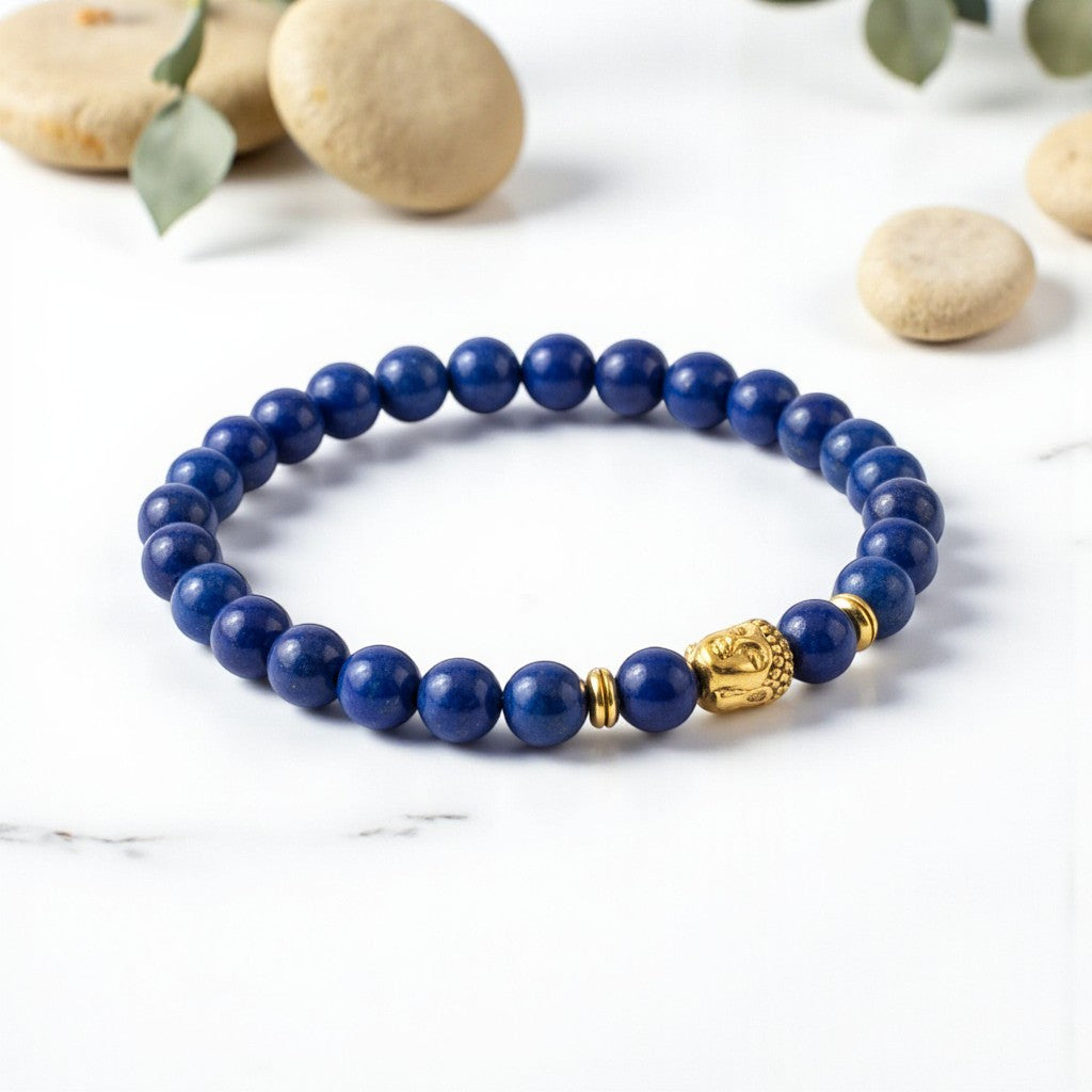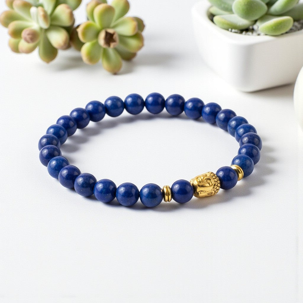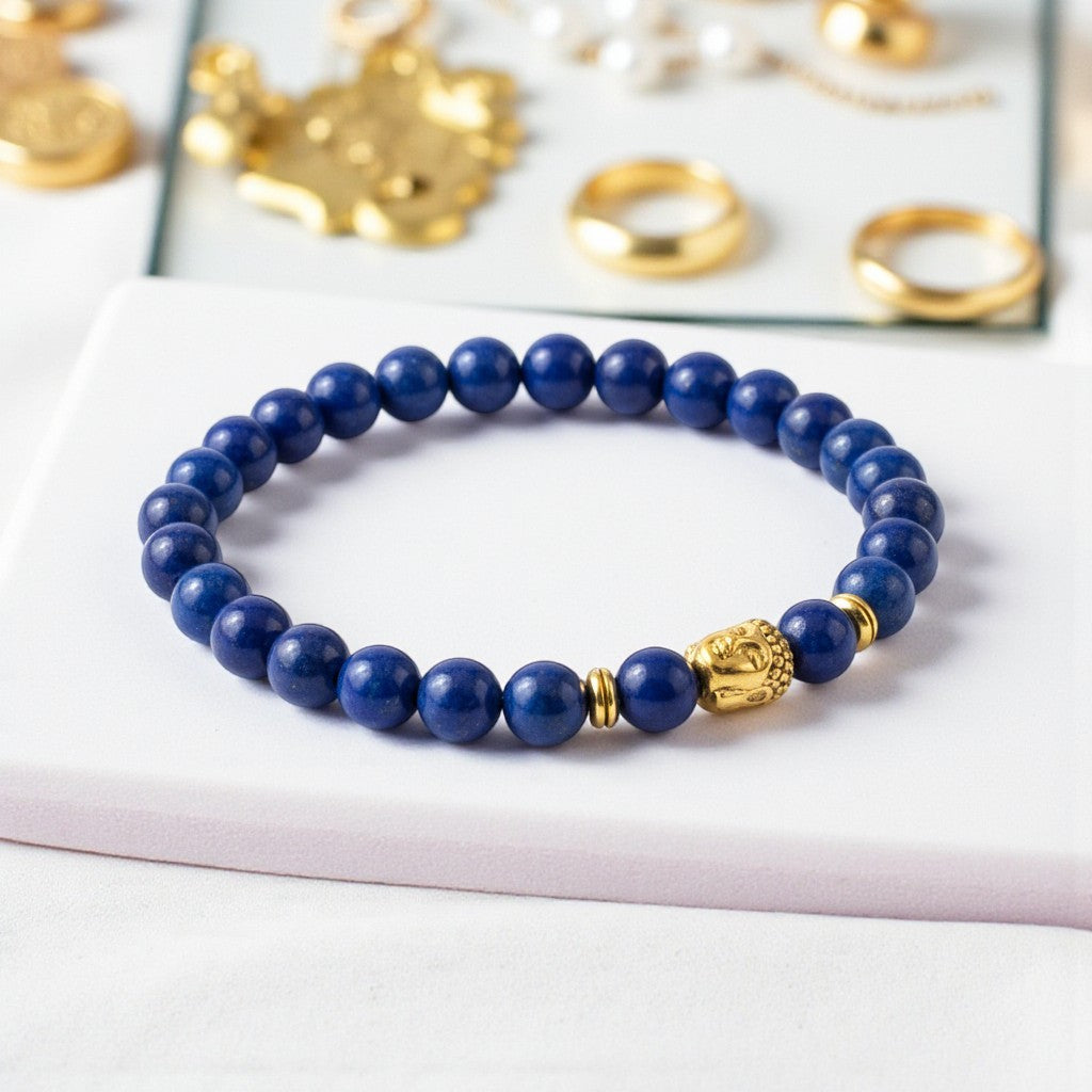 Natural Lapis Lazuli Gemstone Bracelet With Buddha Head Charm for Enlightenment and Inner Peace