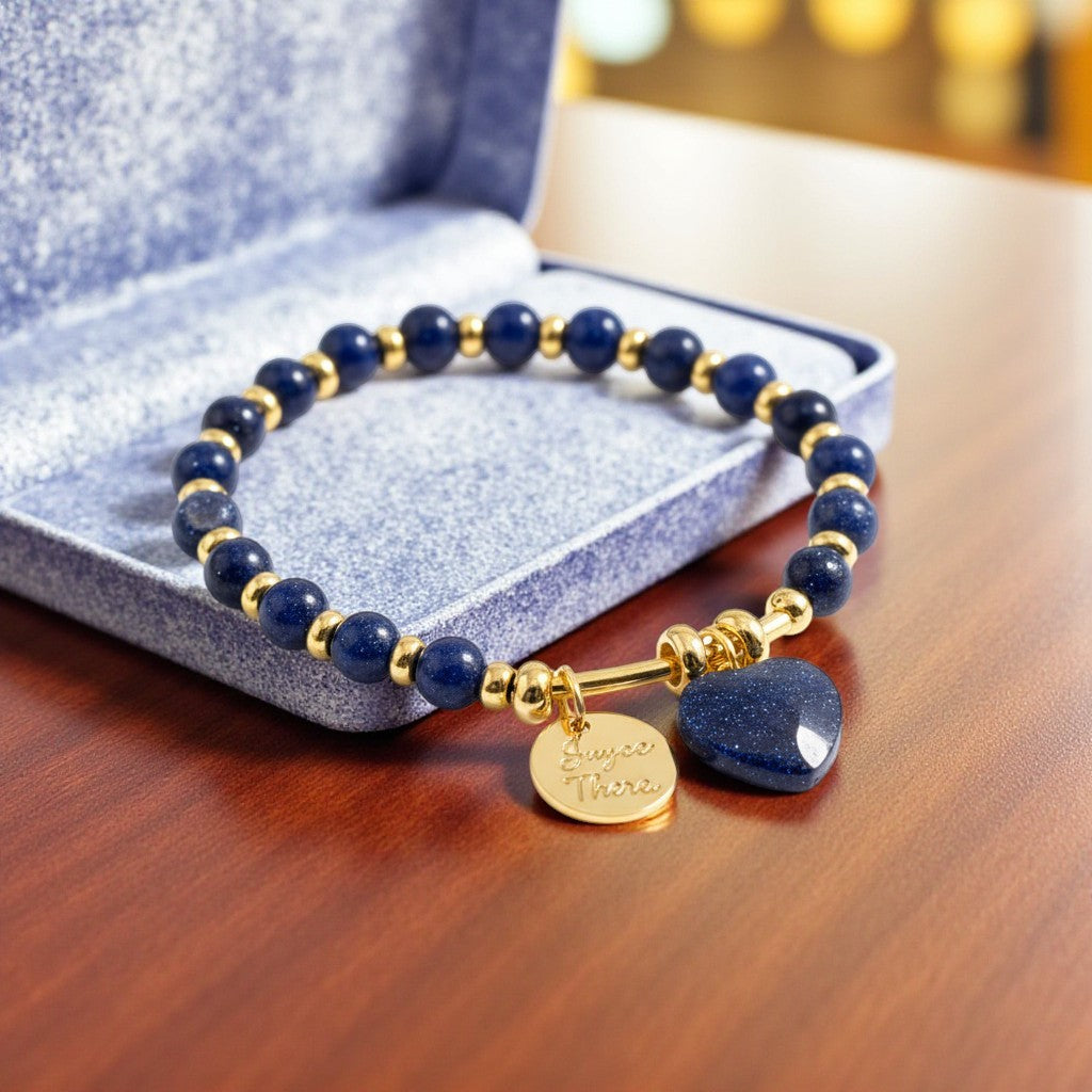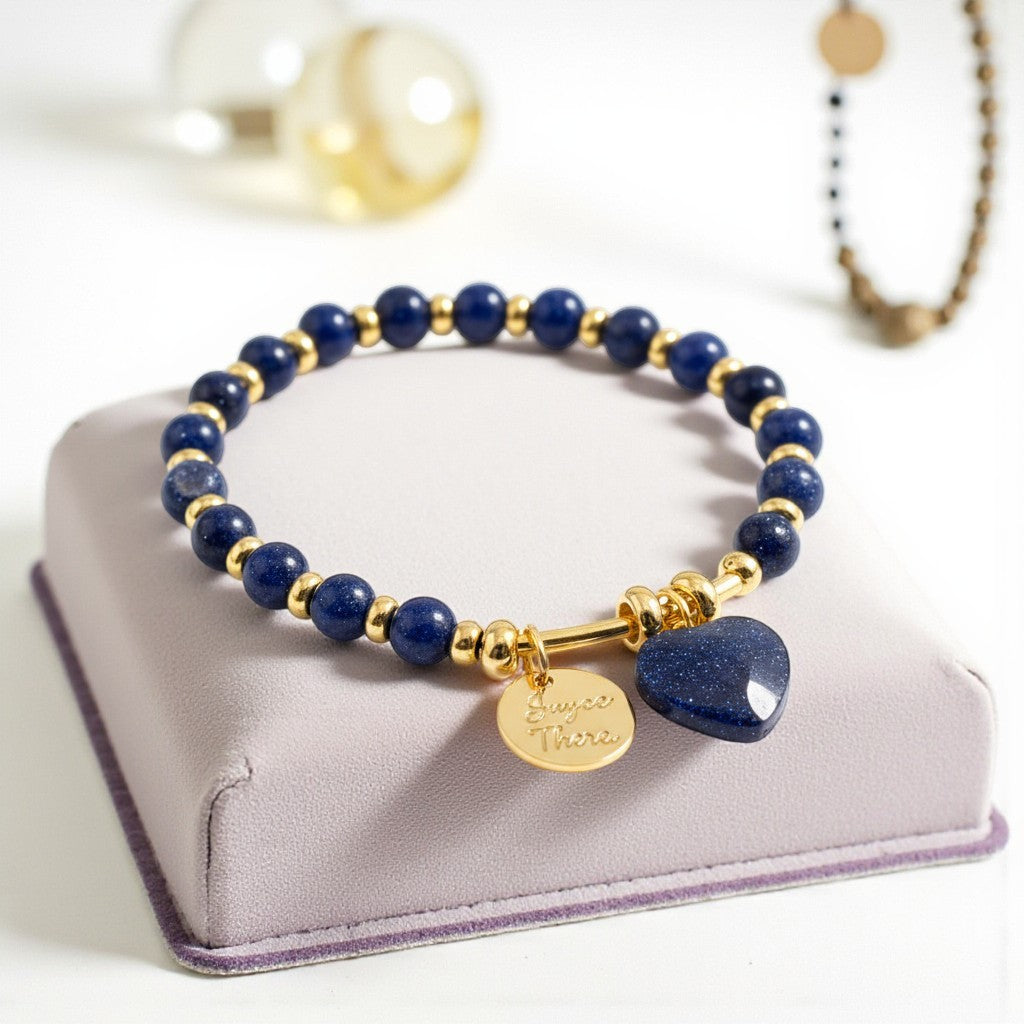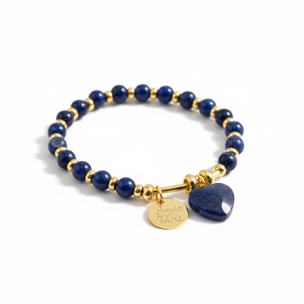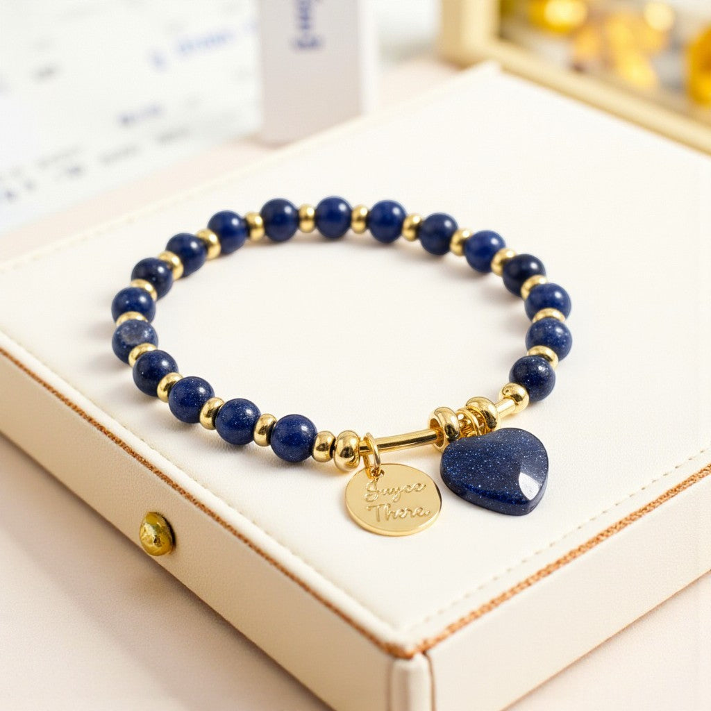 Natural Lapis Lazuli Heart Charm Bracelet for Wisdom, Intuition and Connection 6mm Beads