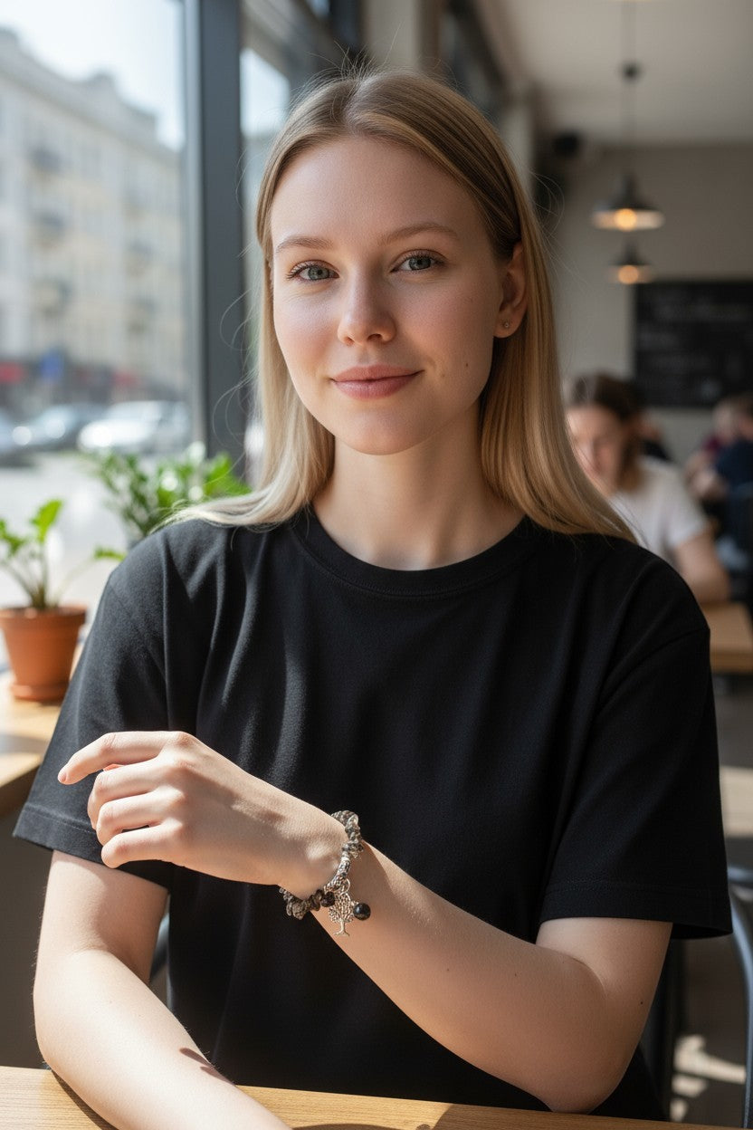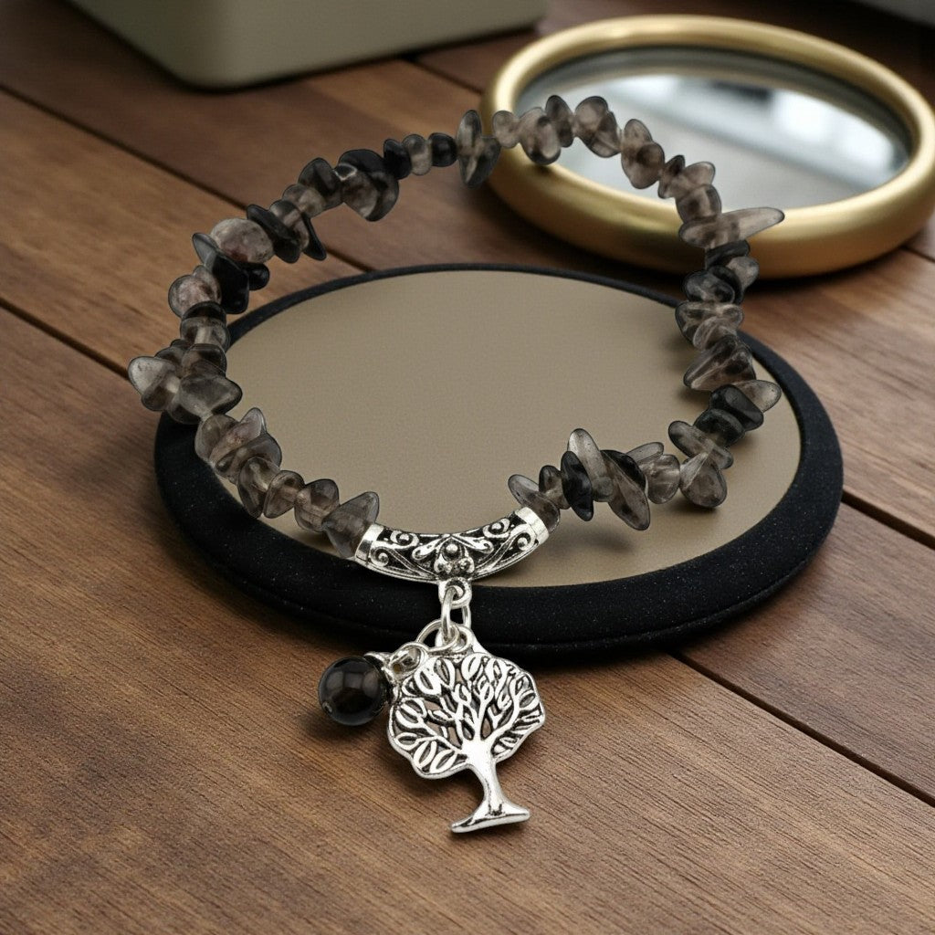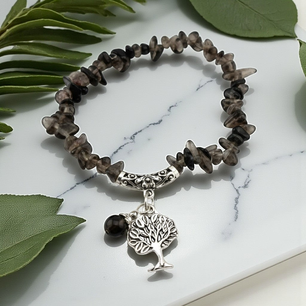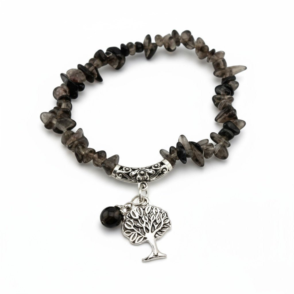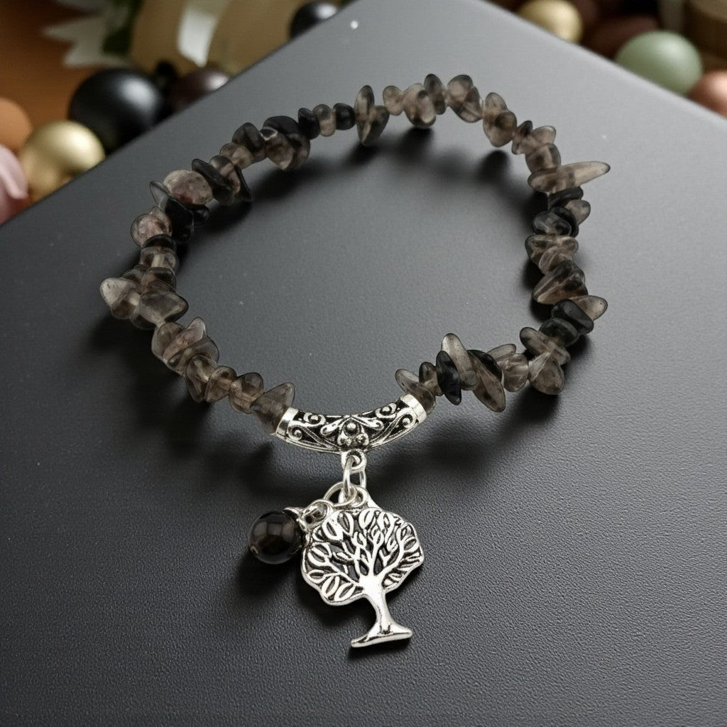 Natural Smoky Quartz Bracelet with a Tree of Life Charm