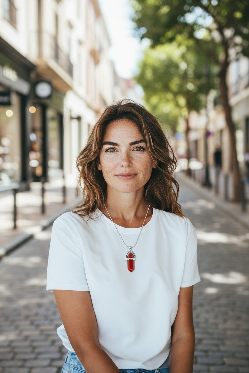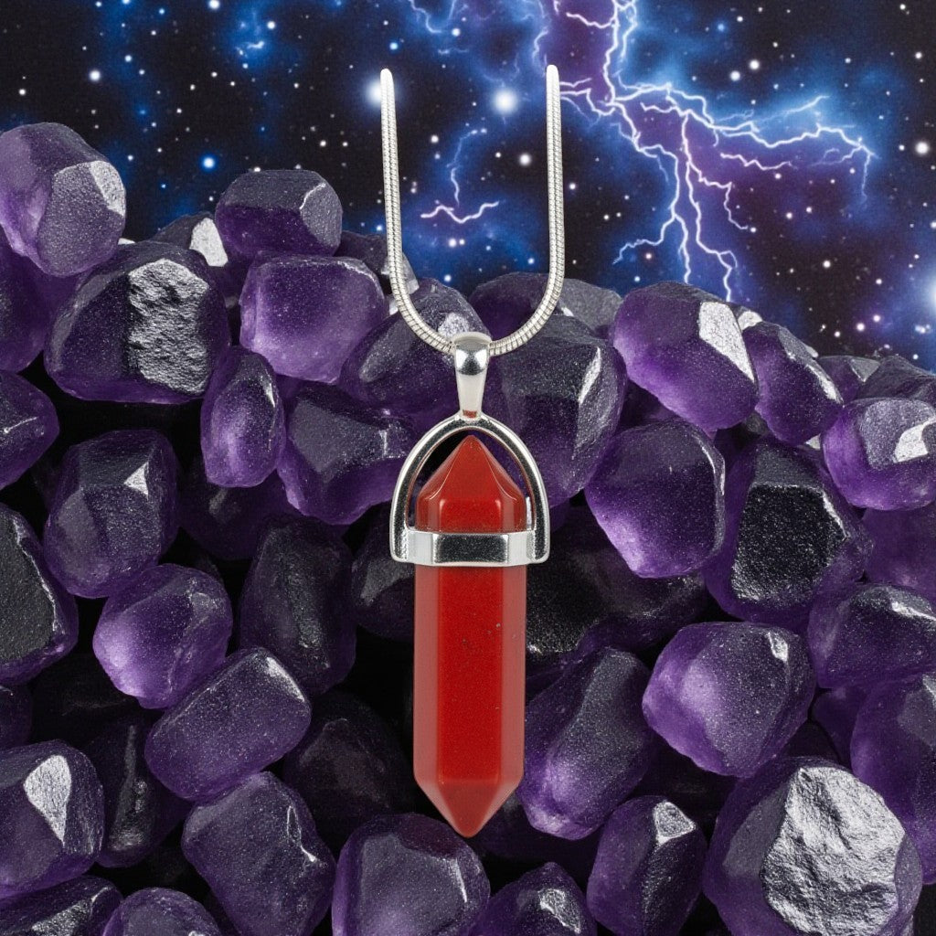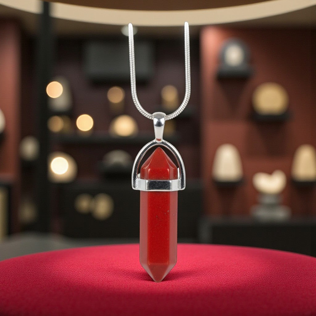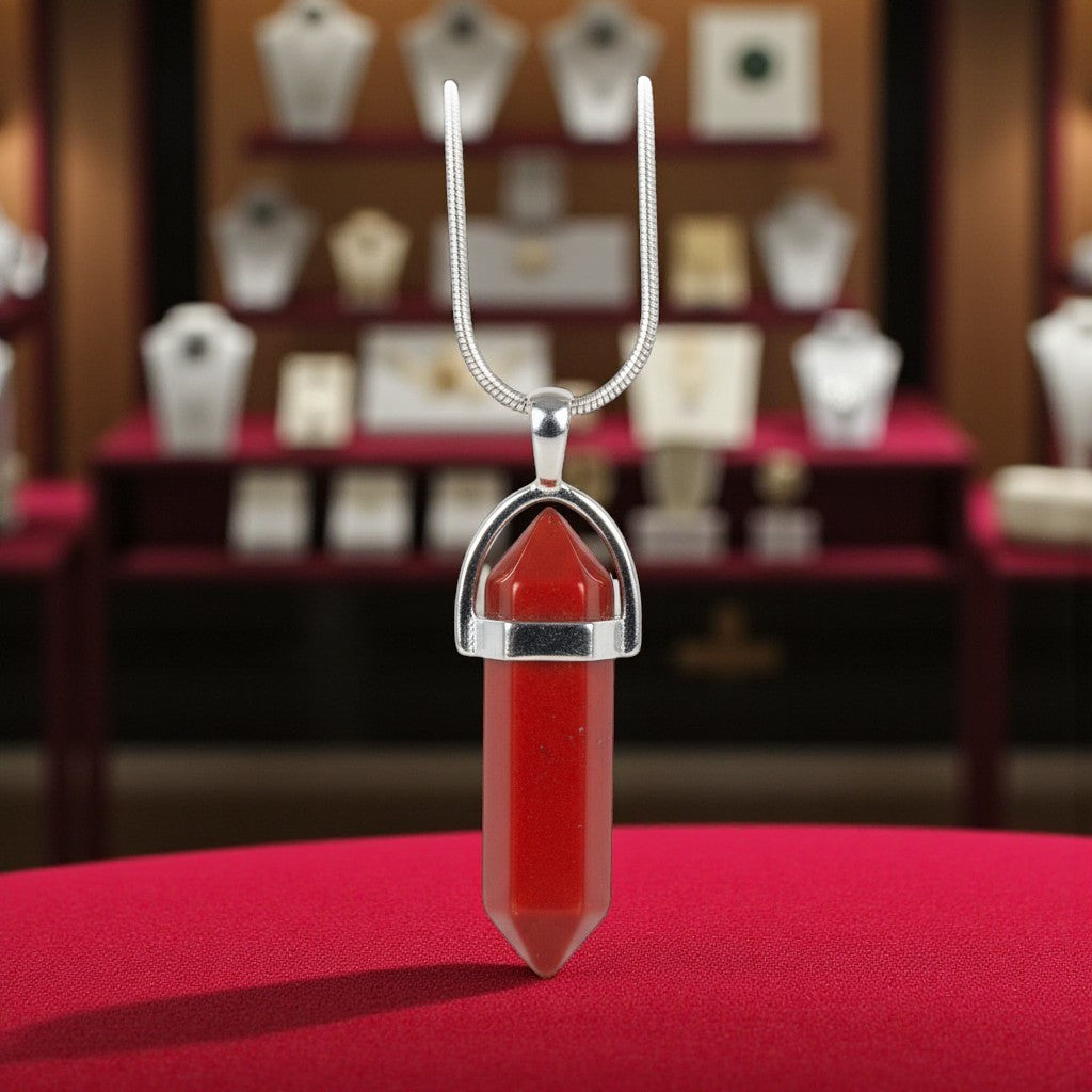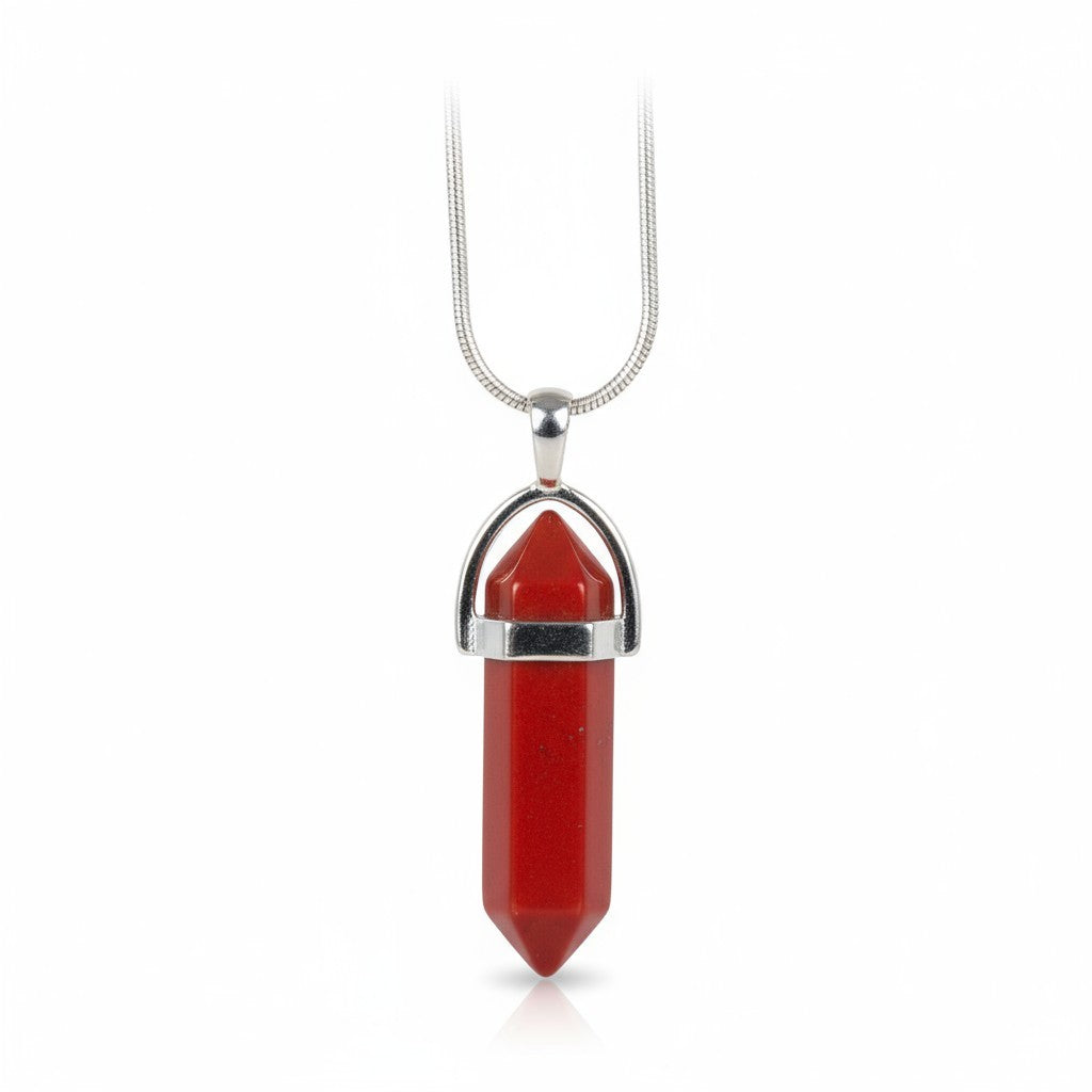 Red Jasper Double Point Gemstone Necklace With 18" Chain