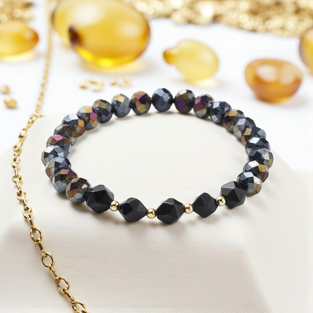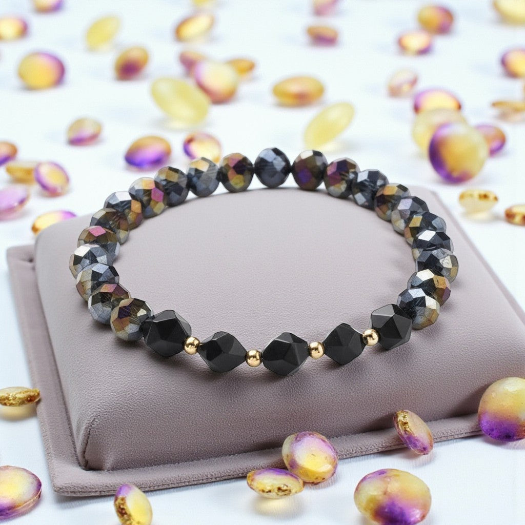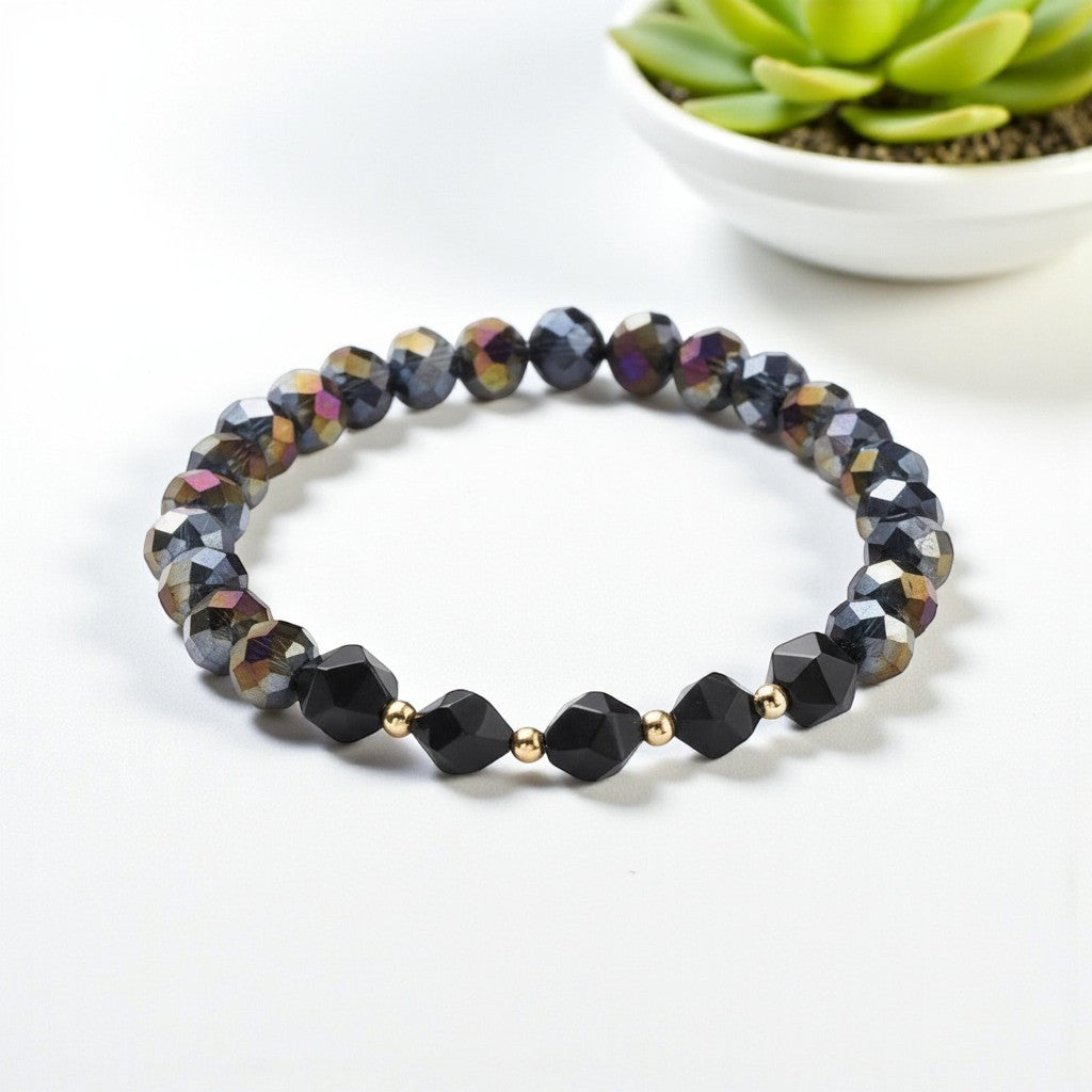 Rondelle Glass and Black Onyx Bracelet Transformative, Protective and Grounding