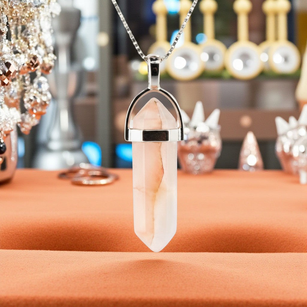 Rose Quartz Double Point Necklace with 18 Inch Chain
