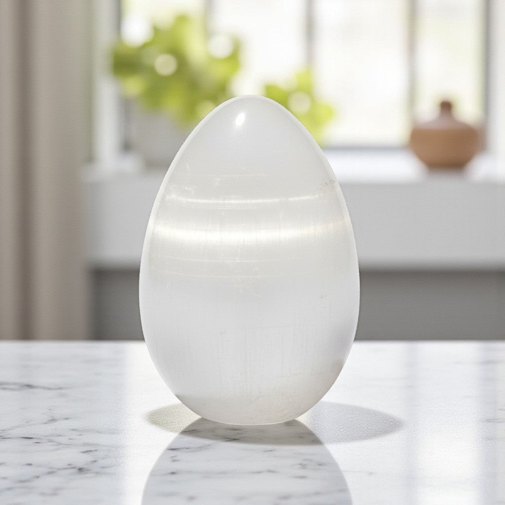 Selenite Egg Natural Stone Carved Egg Metaphysical Healing and Home Decor