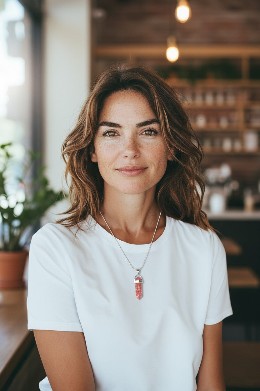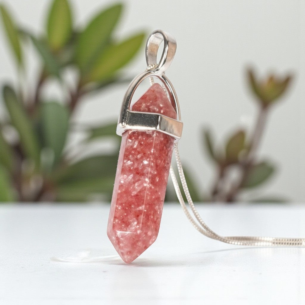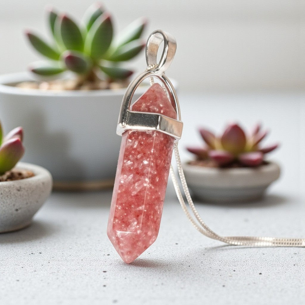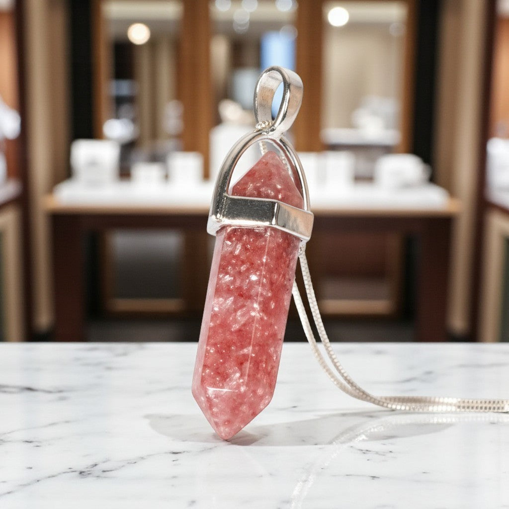 This Strawberry Quartz Double Point Pendant features a uniquely cut double-point design that enhances the stone's natural beauty and energy... Read more
