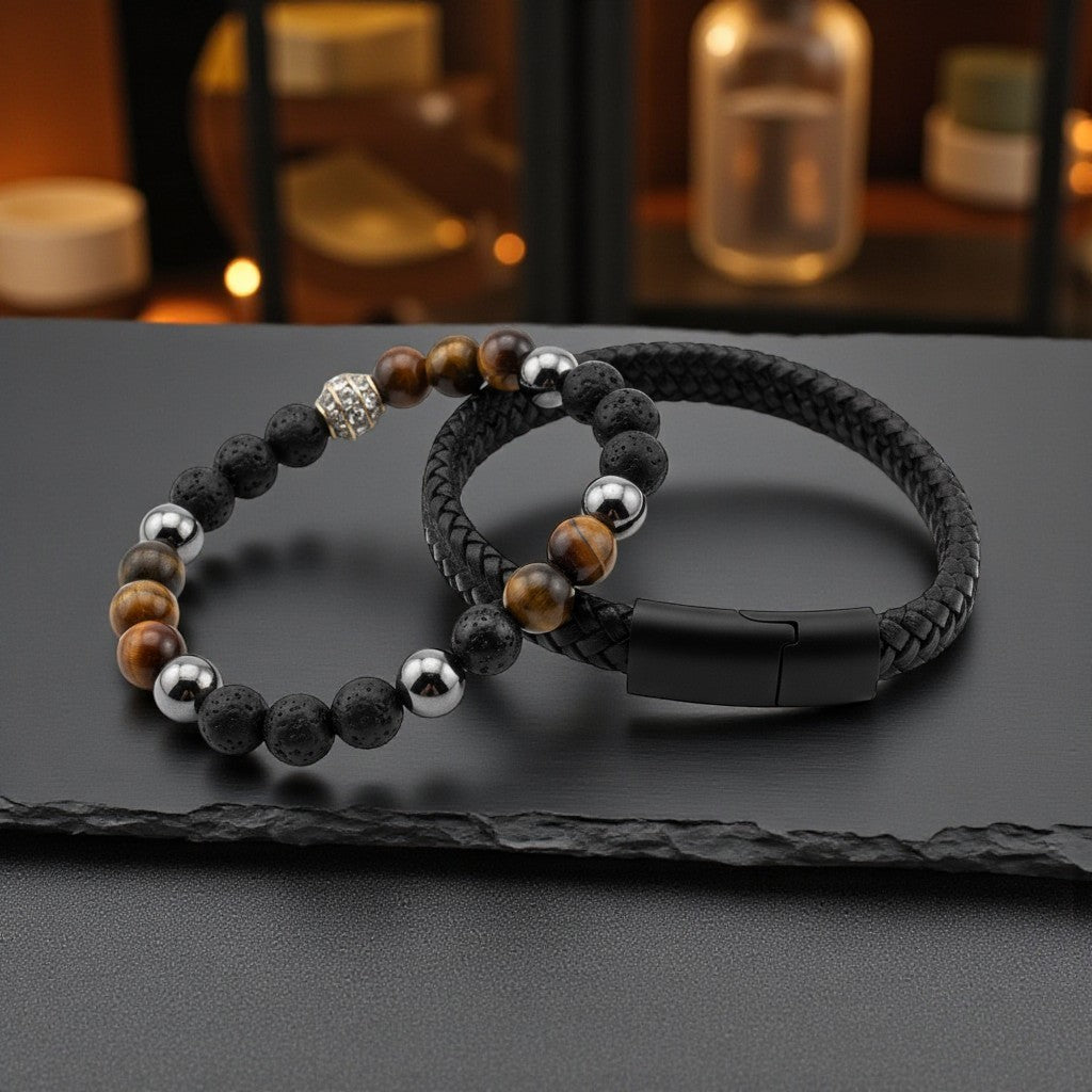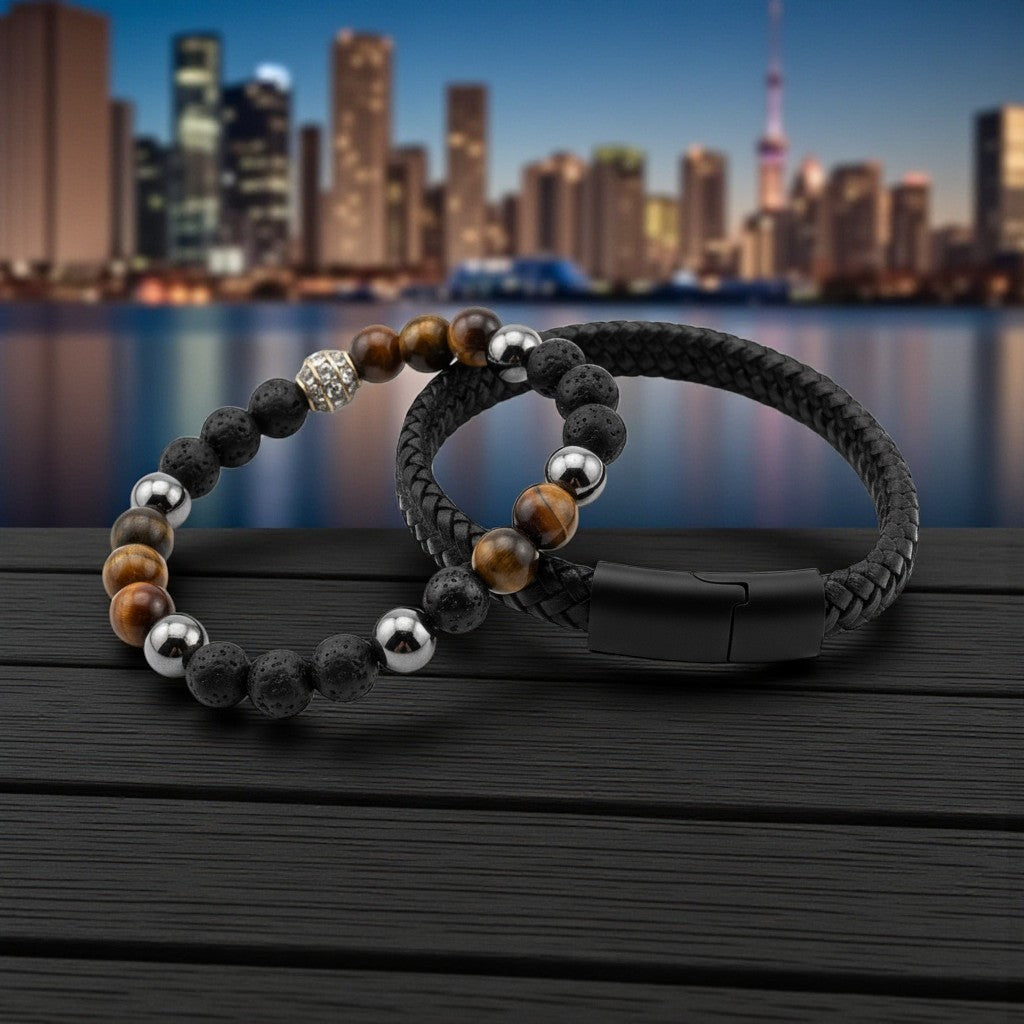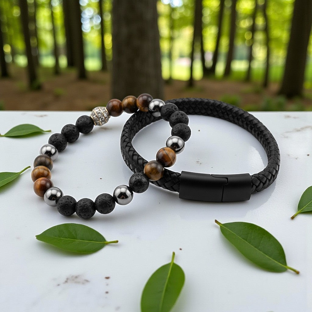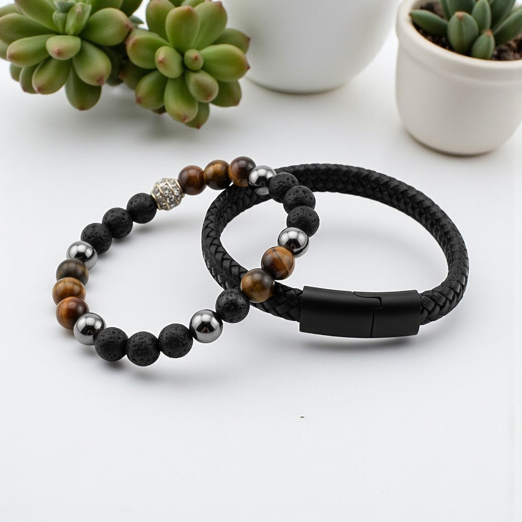 Tiger Eye and Woven Bracelet for courage, confidence, and protection, promoting mental clarity